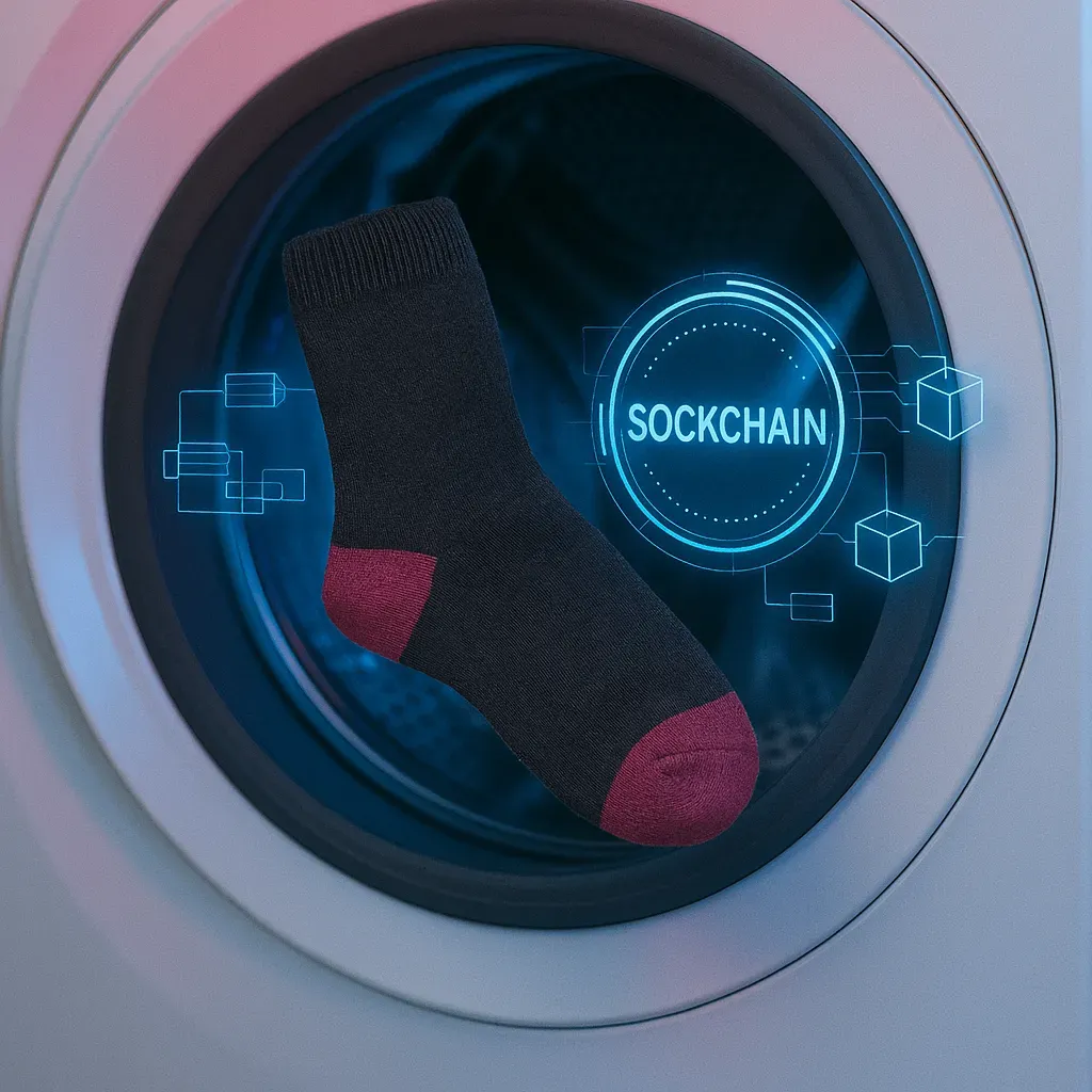 Lost a sock? Never again. Each sock is tracked across the multiverse using our patented Sockchain technology. Blockchain for footwear, because why not.